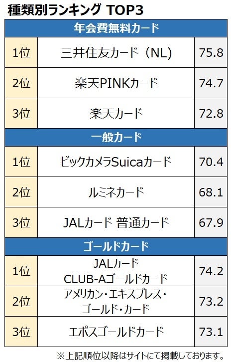 クレジットカードは一つのブランドのなかでそれぞれ特性をもつ複数のカードが発行されていることから、総合ランキングと評価項目別ランキングではカードブランド単位、部門別ランキングでは発行カード単位での結果を発表しています。