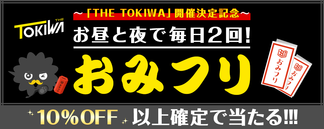 毎日2回振れるクーポンくじが期間中は「THE TOKIWA」仕様に。ハズレなし、最大50%OFFクーポンが当たります。
