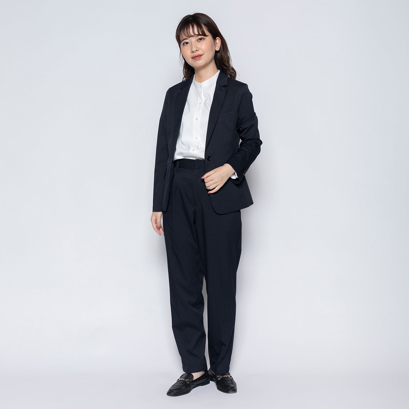 特徴:首元の丸みが女性らしい雰囲気を演出。首元がすっきりしているため、様々な形のジャケットとも合わせやすいです。