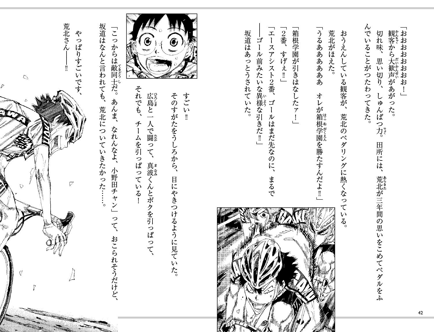 先頭を走るのは、箱根学園の荒北。勝負は総北と箱根学園の争いに突入する!