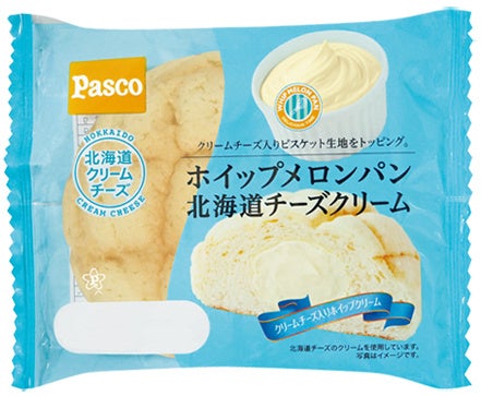 北海道産クリームチーズ入りのビスケット生地をトッピングしたメロンパンに、北海道産クリームチーズ入りのホイップクリームをたっぷりと注入しました。