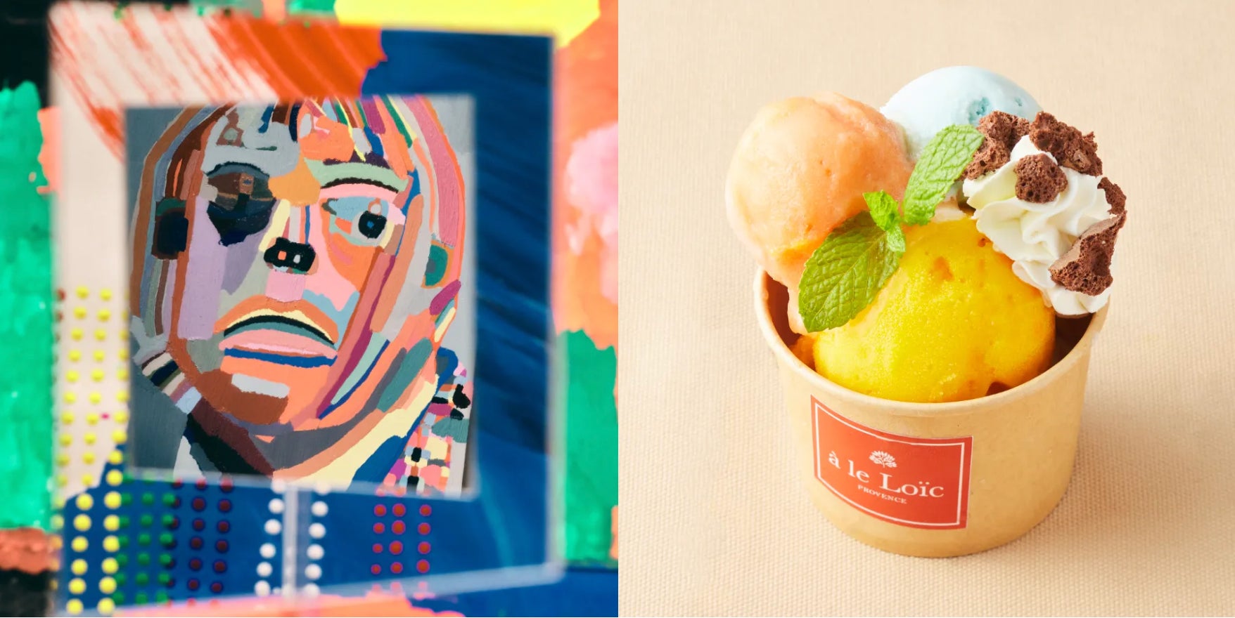 会期中、9階 祝祭広場のカフェ「ア・ル・ロイック」にて、特別共同企画のジェラート・ドリンクの販売を予定しています。原画から感じるインスピレーショをジェラートとドリンクで表現しました。