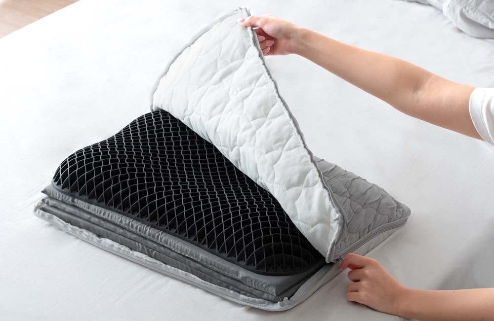 低反発ウレタン層、エアバランス層、高反発ウレタン層の3種類の高さ調節シートが付属しています。これらのシートと、上下で高さが異なるTPE素材を組み合わせることで、細やかな高さ調整が可能となり、使う人に合った最適な硬さと高さを見つけることができます。