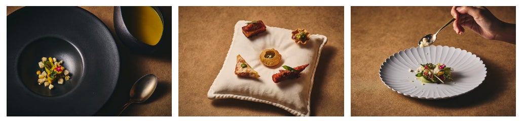 メニューは、インドの文化と伝統的な料理法をベースに、世界の調理技術と日本の旬の食材を取り入れながら構成。最初の一口目からインドに誘い、コースが進むごとにより深く、奥深い世界を堪能していただけます。