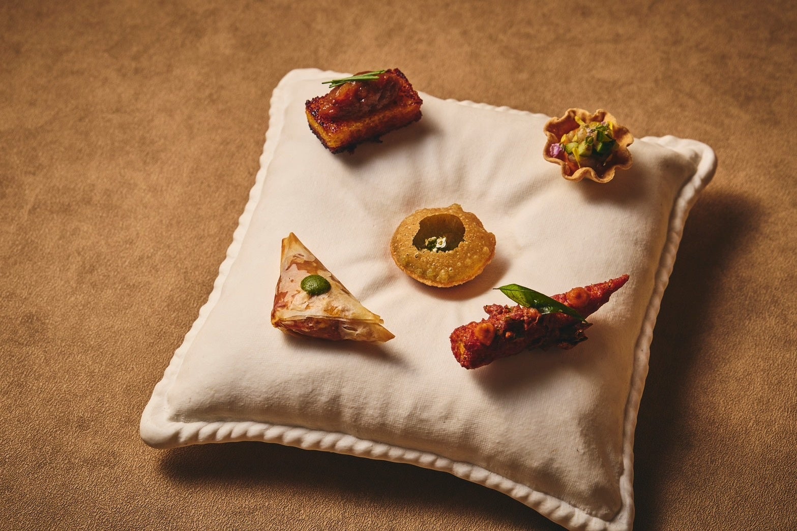 シェフは、インド出身のテジャス・ソヴァニ。世界各地で培われた柔軟な感性と確かな技術でスパイスを自在に活かし、前衛的でありながら繊細にインド料理を再解釈します。