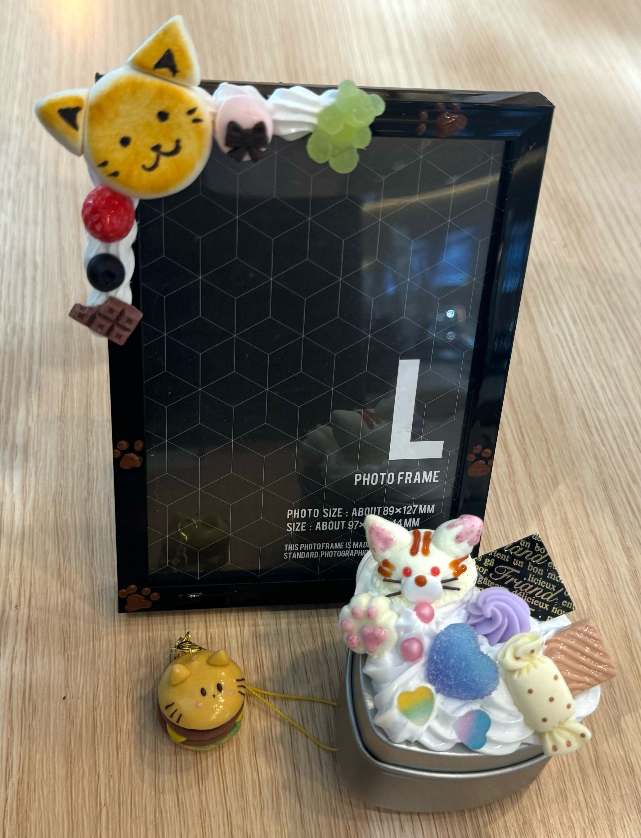 猫モチーフを使ってフォトフレームや小物入れなどかわいいアイテムを作れるワークショップです。