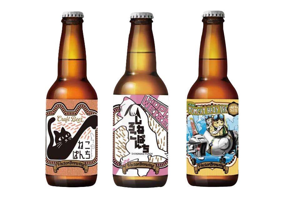 (左から)ねこぱんち/しろねこぱんち/TomCatHazyIPA 各¥1,630(別途サービス料10%)