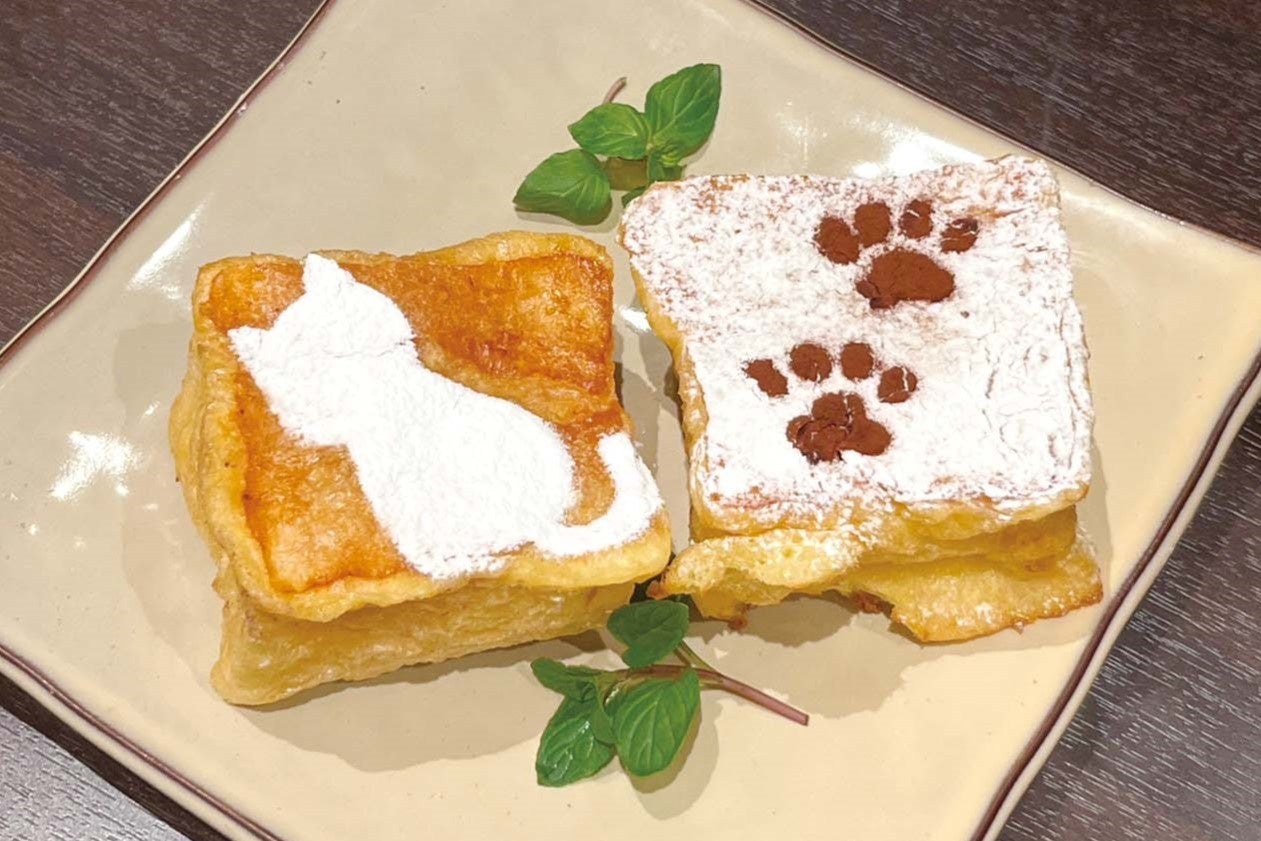 通年販売しているフレンチトーストに猫の日フェア限定で粉糖やココアパウダーを使用して、可愛らしくネコ仕様にしました。