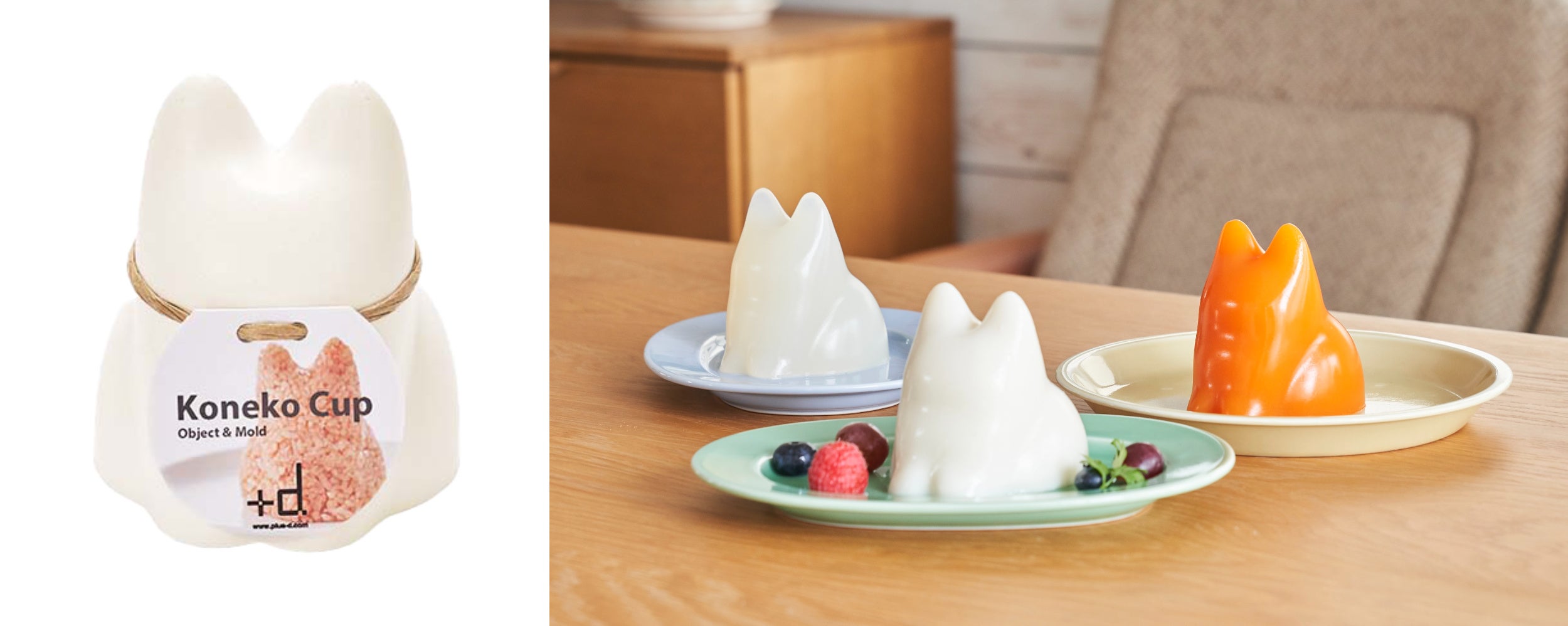 カップ型のネコがごはんやゼリー、砂や雪の猫シルエットを無限にうみ出します。オブジェとしてもやさしいシルエットが癒してくれます。