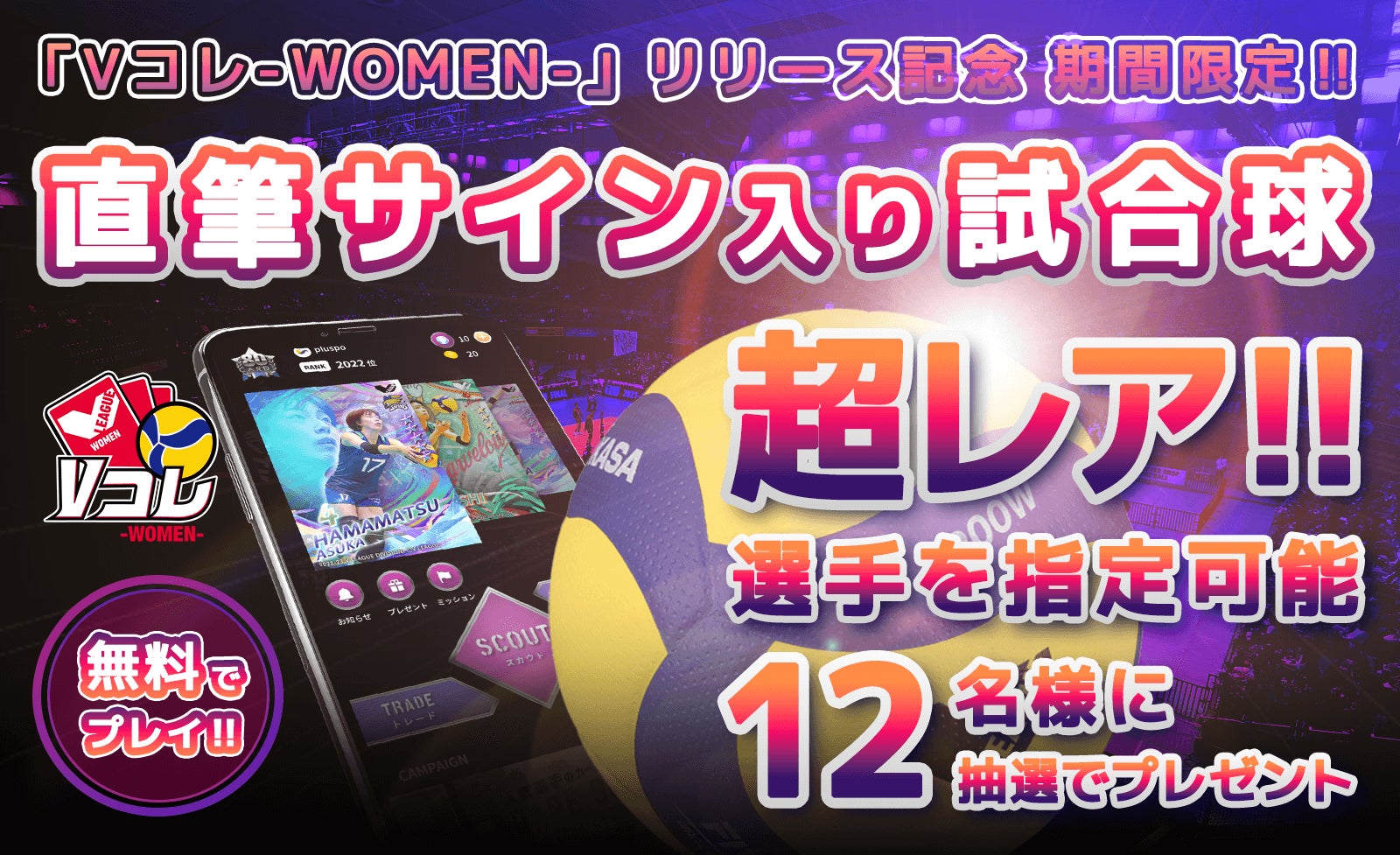 リリースを記念して、ご応募いただいた中から抽選で12名様に、実際に試合で使用したボールに希望選手のサインを入れてプレゼント。1ヶ月間の期間限定企画となります。試合使用球という点だけでなく、好きな選手のサインを指定できるという貴重な機会をぜひお見逃しなく。「Vコレ -WOMEN-」にご登録いただいたうえで、申し込みページよりご応募ください。