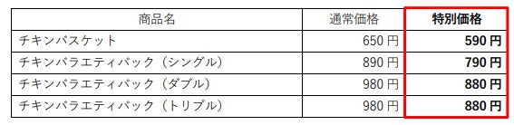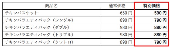 ※チキンバラエティパック(クワトロ)は、「ほっともっとグリル」のみ対象となります