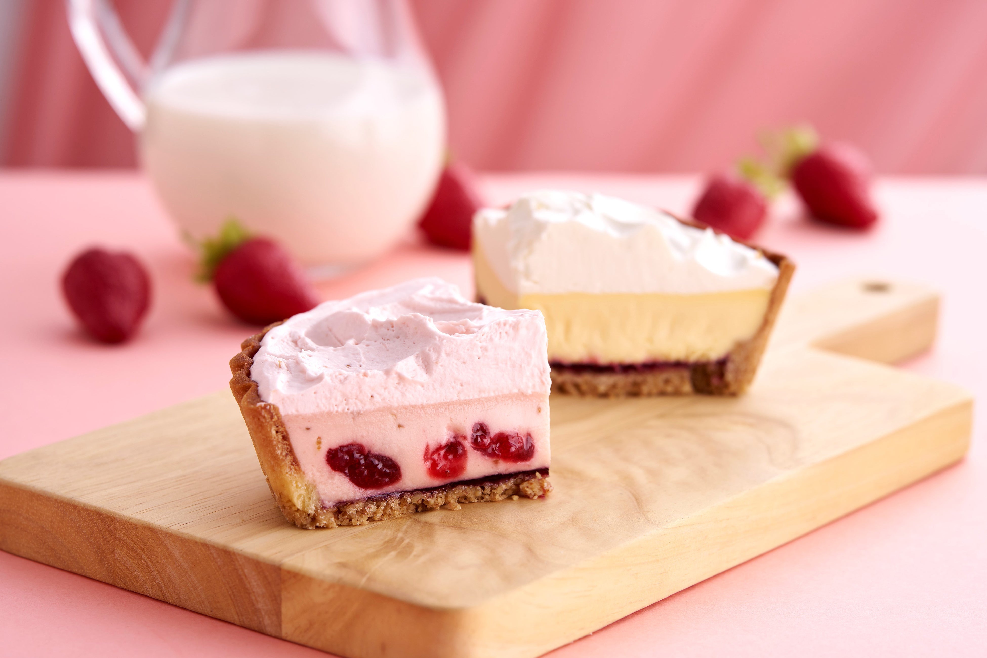 写真手前:「絞りたての雪どけチーズケーキ<いちご>」
