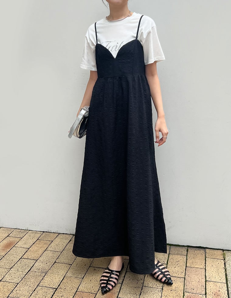 フェミニンな魅力を引き出すジャガードキャミワンピ