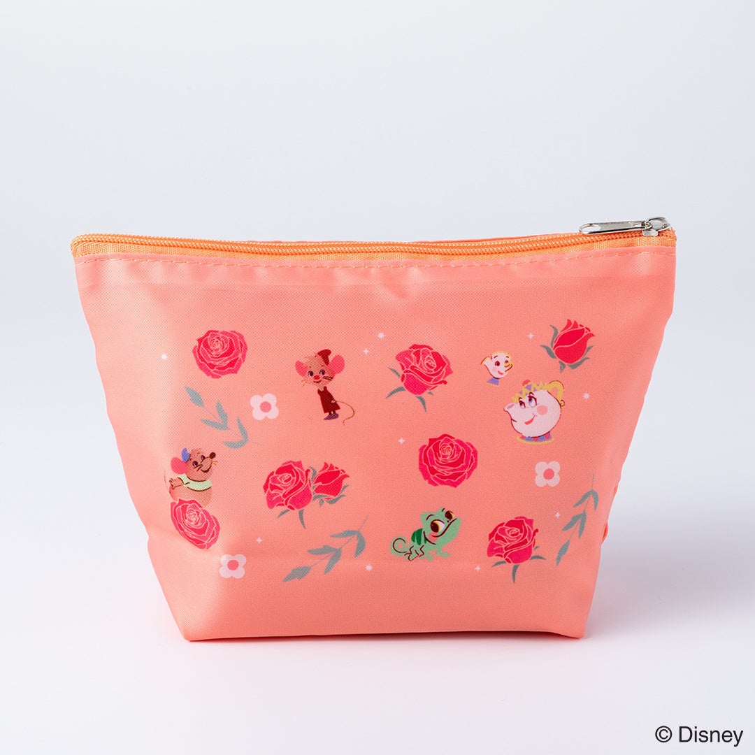 サーモンピンクがカワイイポーチは、表面には「シンデレラ」「ベル」「ラプンツェル」を、裏面には物語に登場するサブキャラクターが描かれています。メイクポーチやトラベルポーチにもぴったりの持ち運びしやすいサイズです。