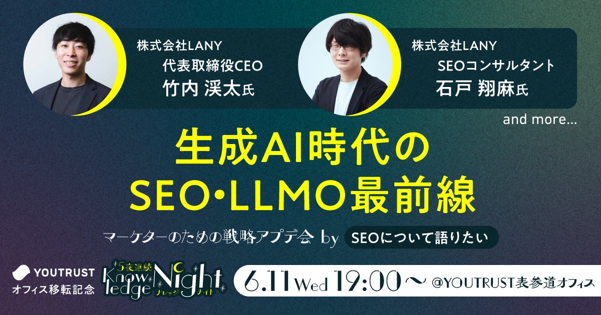 【6/11(水)開催】YOUTRUST主催イベントにLANY登壇!『生成AI時代のSEO・LLMO最前線|マーケターのための戦略アプデ夜会 bySEOについて語りたい』