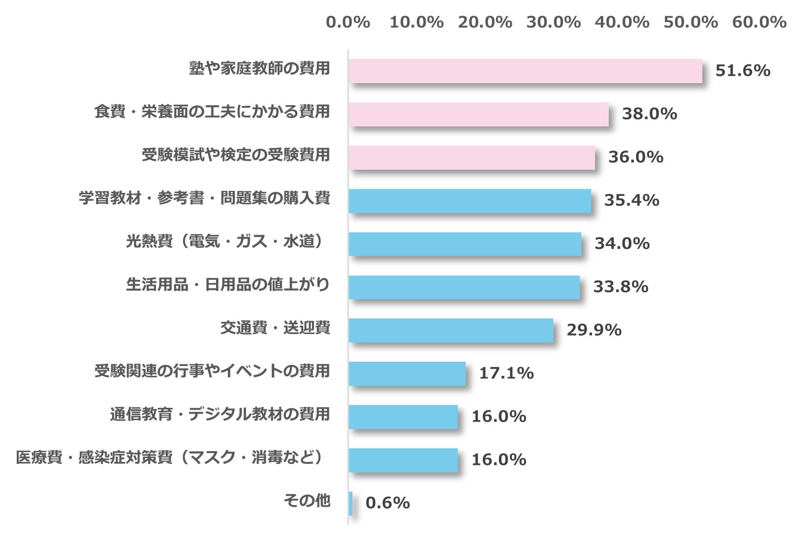 ・物価高騰で最も負担が増えたのは「塾・家庭教師費(51.6%)」