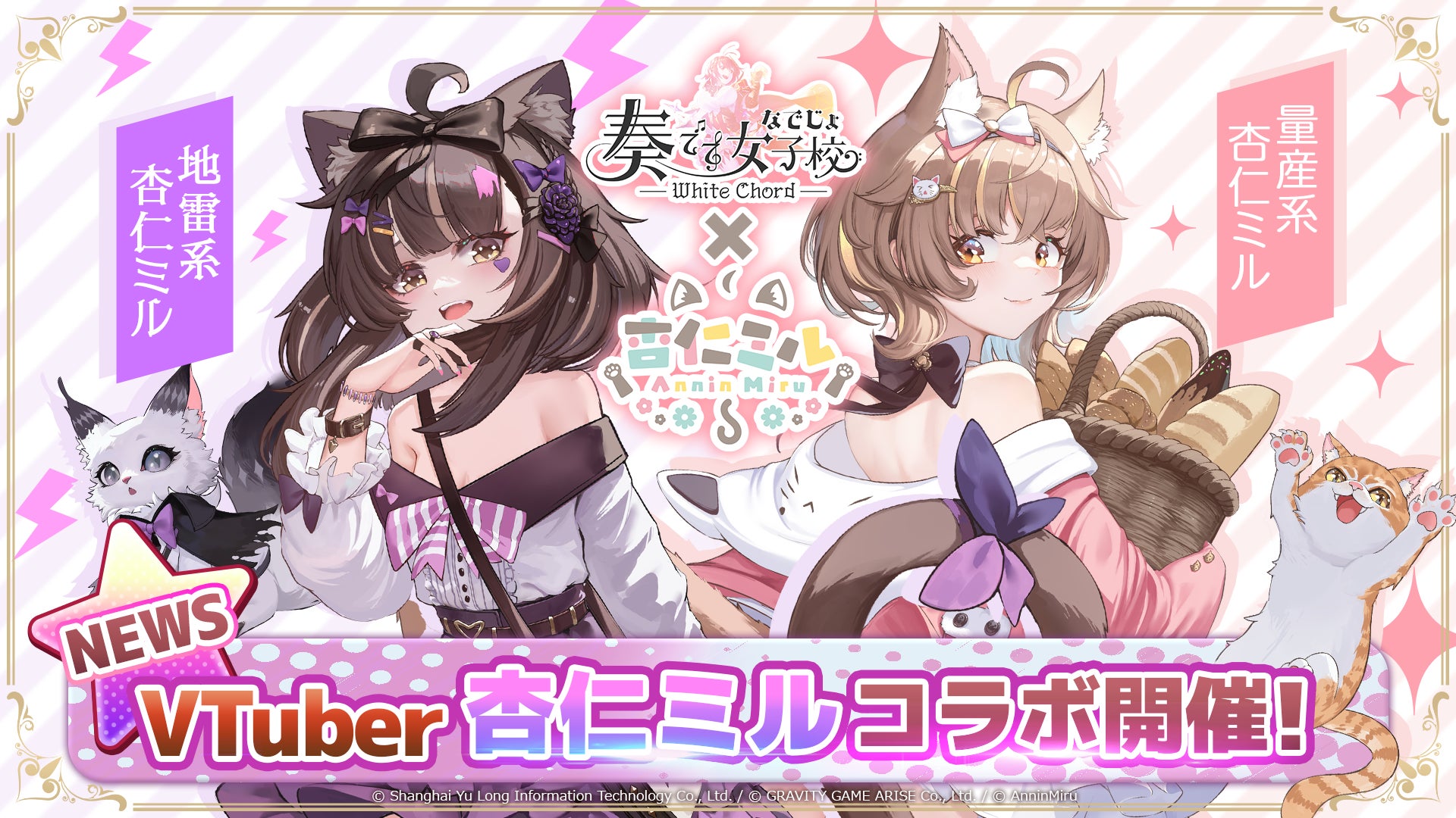 【奏でて女子校 ~ なでじょ ~】本日1月31日(水)より、YouTube登録者数40万人越えの人気台湾VTuber「杏仁ミル」とのコラボイベント開催!あなたは量産系・地雷系どちらのミルを選ぶ?