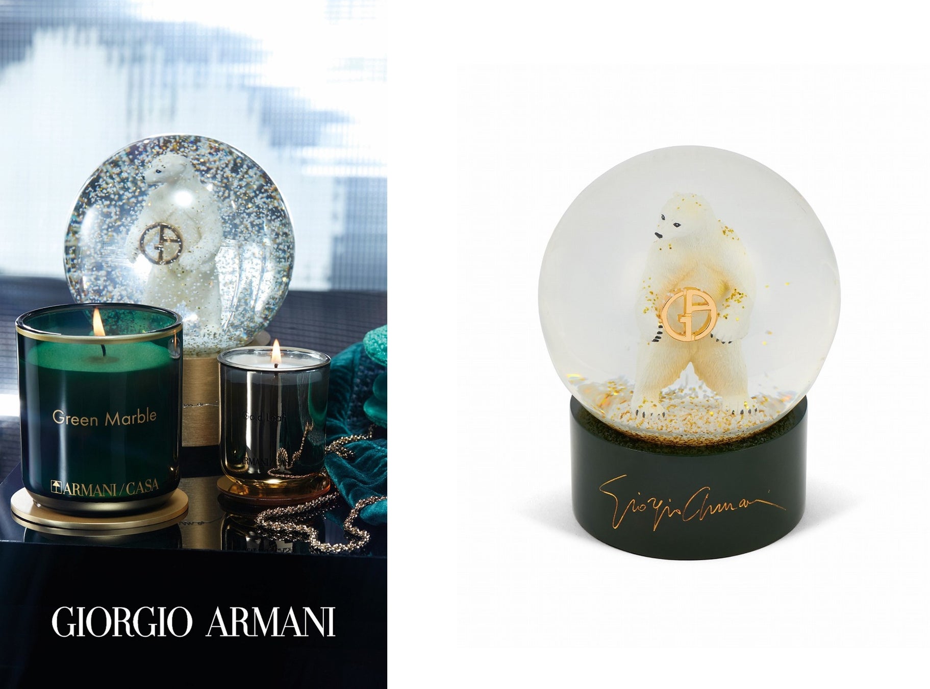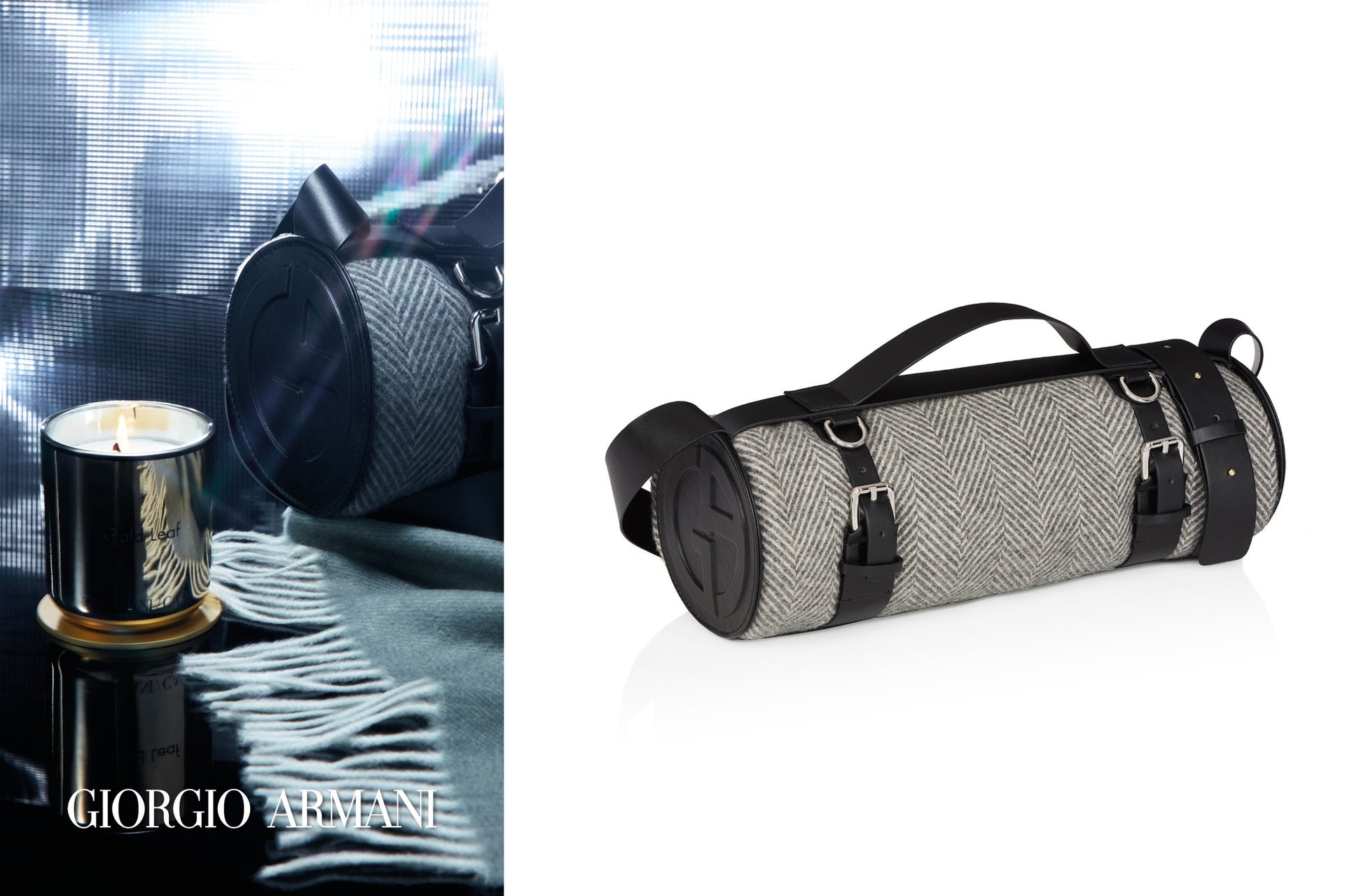 ファッションアイテムだけでなく、アルマーニ / カーザからは日々の暮らしをさりげなくアップグレードしてくれる洗練されたインテリアグッズがラインナップ。サンモリッツにあるジョルジオ・アルマーニの別荘に飾られているアイコニックなベアとホワイトとゴールドのグリッターを閉じ込めたスノードームはホリデーの温かなムードを運んでくれるオブジェです。また、ヘリンボーン柄のウールとエコレザー製のブランケットバッグはバッグを広げるとブランケットが丸く包まれており、長方形のブランケットとしてお使い頂けるのでホリデー期間中のアウトドアアクティビティでも活躍してくれるアイテムです。