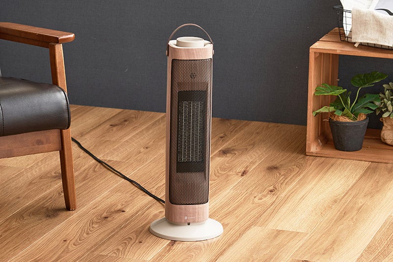 リアルな木目柄がインテリアに調和する、見せ置きできるヒーター。送風モード搭載のため、夏は扇風機としての利用も◎。