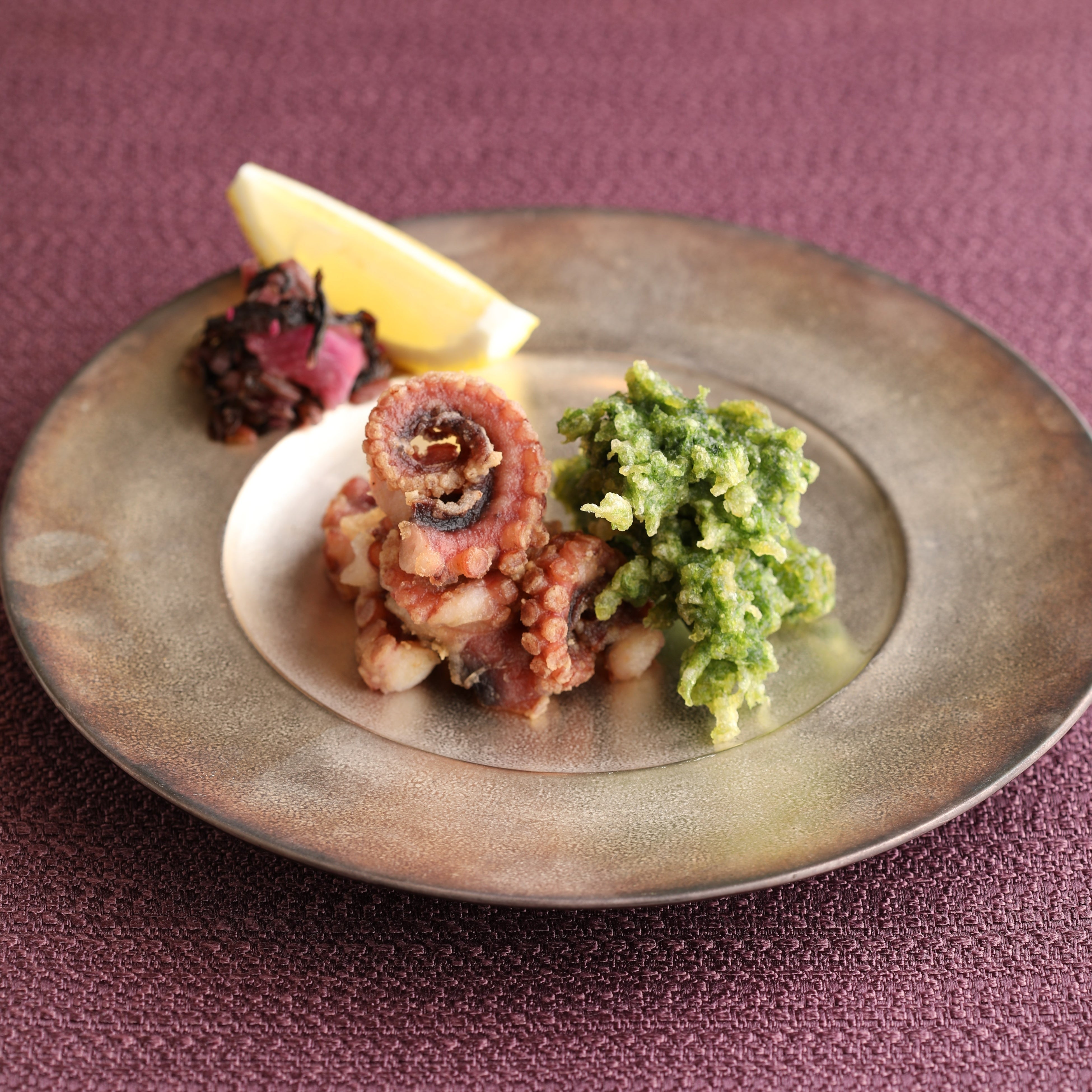 ◇柳蛸の麹から揚げとあおさ海苔の天ぷら (680円)