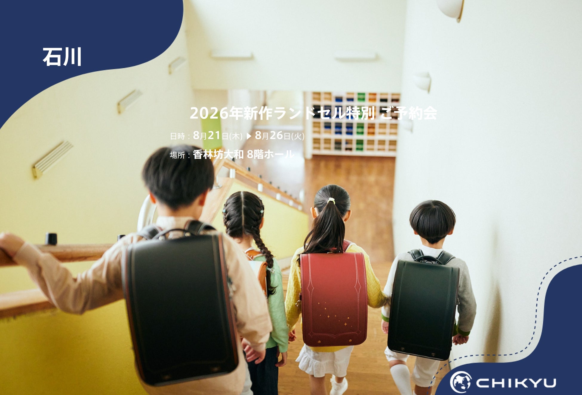 ランドセルの企画・販売を行うCHIKYU株式会社(東京都港区、代表取締役:村尾光一)は、石川・大和香林坊店での「2026年新作ランドセル特別ご予約会」に参加いたします。