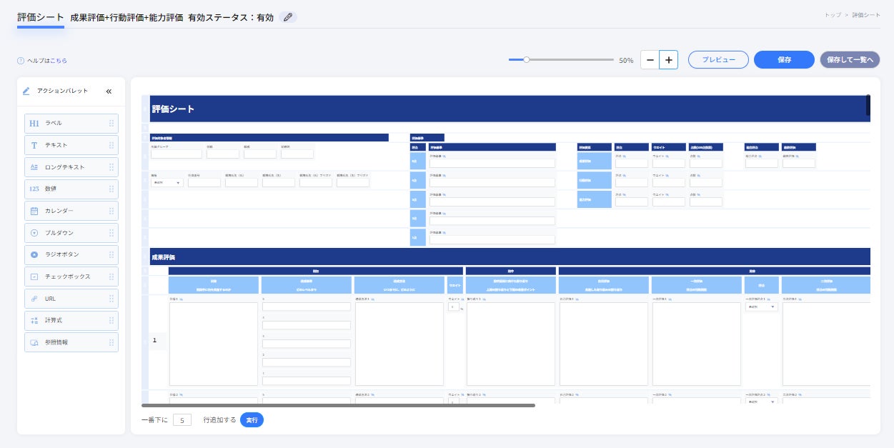 ▼「成果評価×行動評価×能力評価」のテンプレートを用いた評価シートの画面イメージ