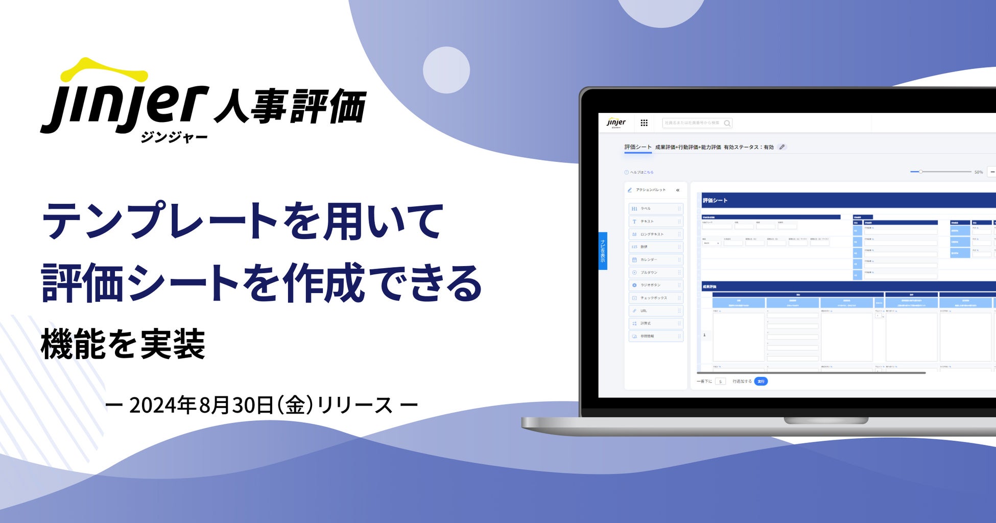 クラウド型人事労務システム「ジンジャー」を提供しているjinjer株式会社(本社:東京都新宿区、代表取締役社長:桑内 孝志)は、「ジンジャー人事評価」で、テンプレートを用いて評価シートを作成できる機能を、8月30日(金)に実装したことをお知らせします。