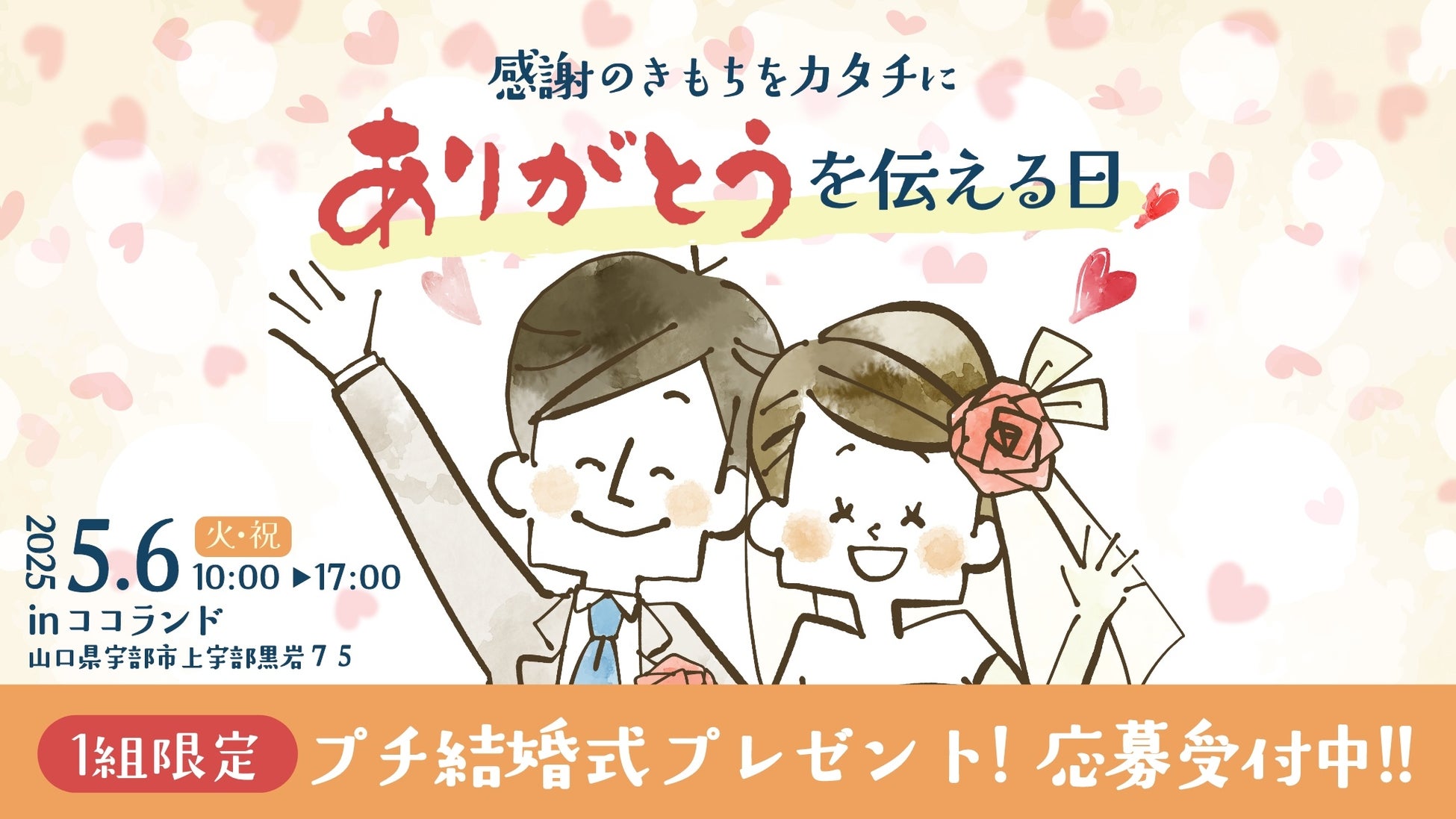 「ありがとう結婚式」5月6日(火・祝)開催|山口県宇部市で無償プレゼント企画、1組限定募集