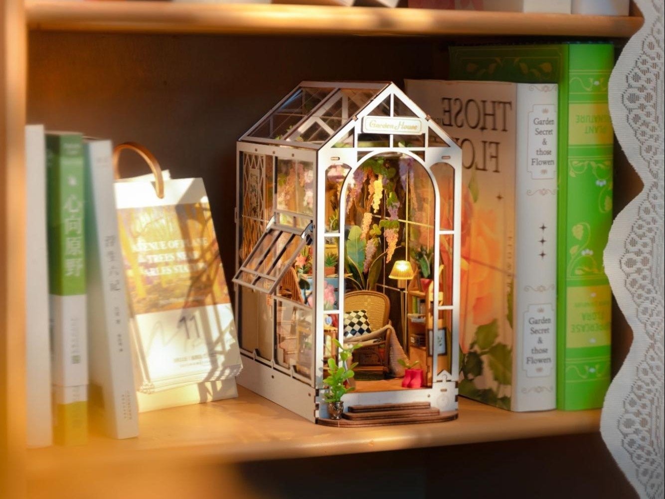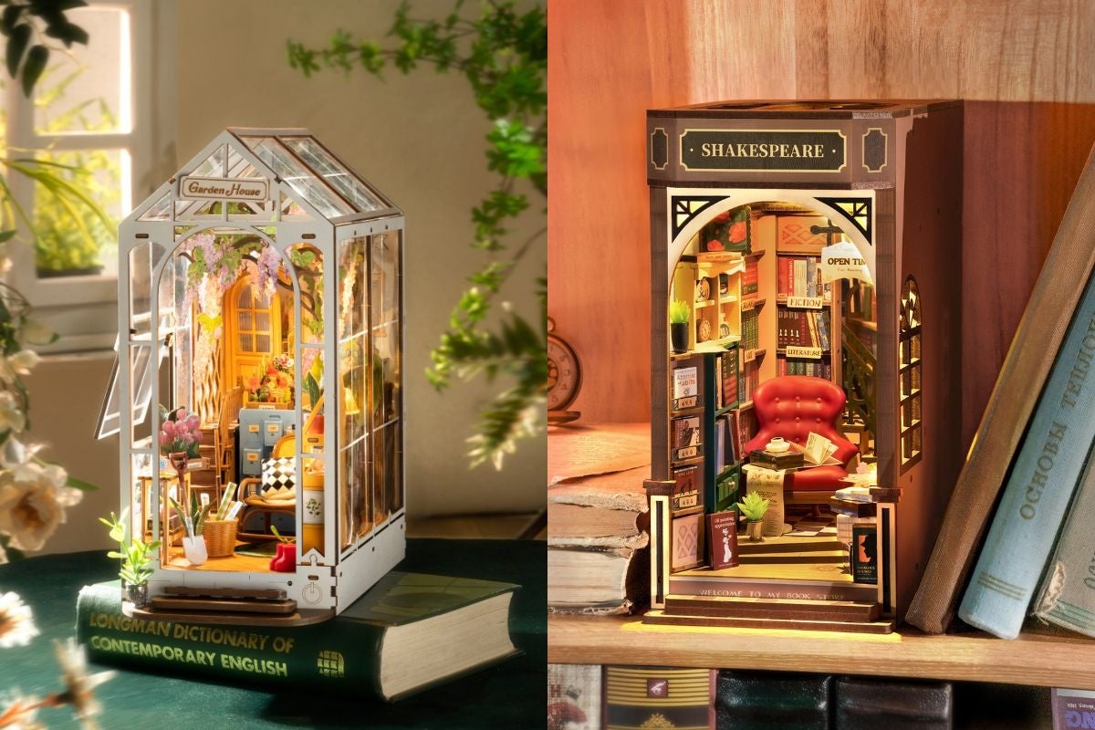 本棚の奥に広がるミニチュアの世界!DIYキット「つくるんです®」ブックヌックシリーズより『フラワーサンルーム』『路地裏の古書店』新登場