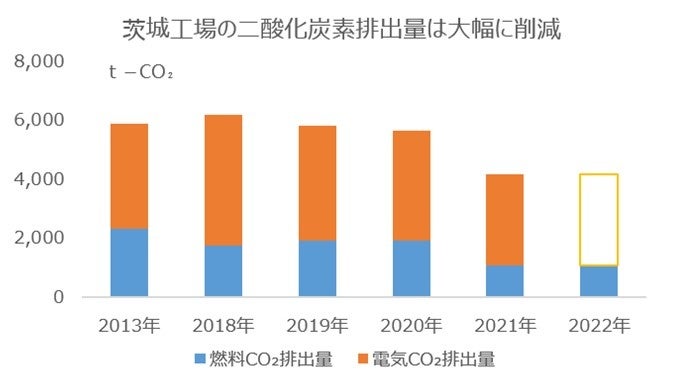 - 茨城工場で再エネ由来電力100% 二酸化炭素の排出量を削減