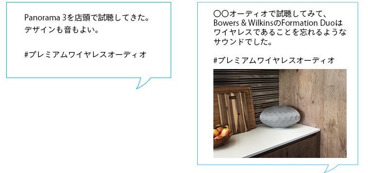 ハッシュタグ「#プレミアムワイヤレスオーディオ」を付けて試聴した感想をツイート