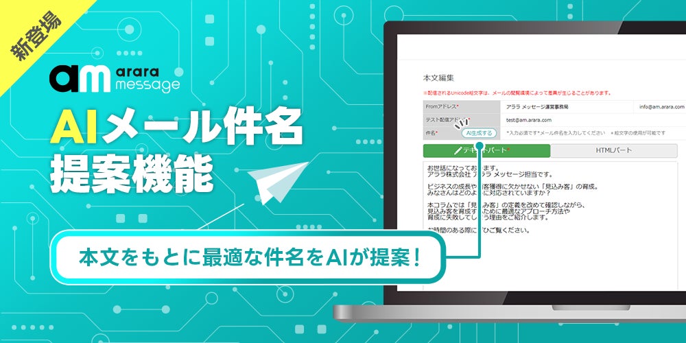 生成AIが最適なメール件名を提案し、工数削減や開封率アップを実現!メール配信サービス「アララ メッセージ」、「AIメール件名提案機能」を8月31日にリリース