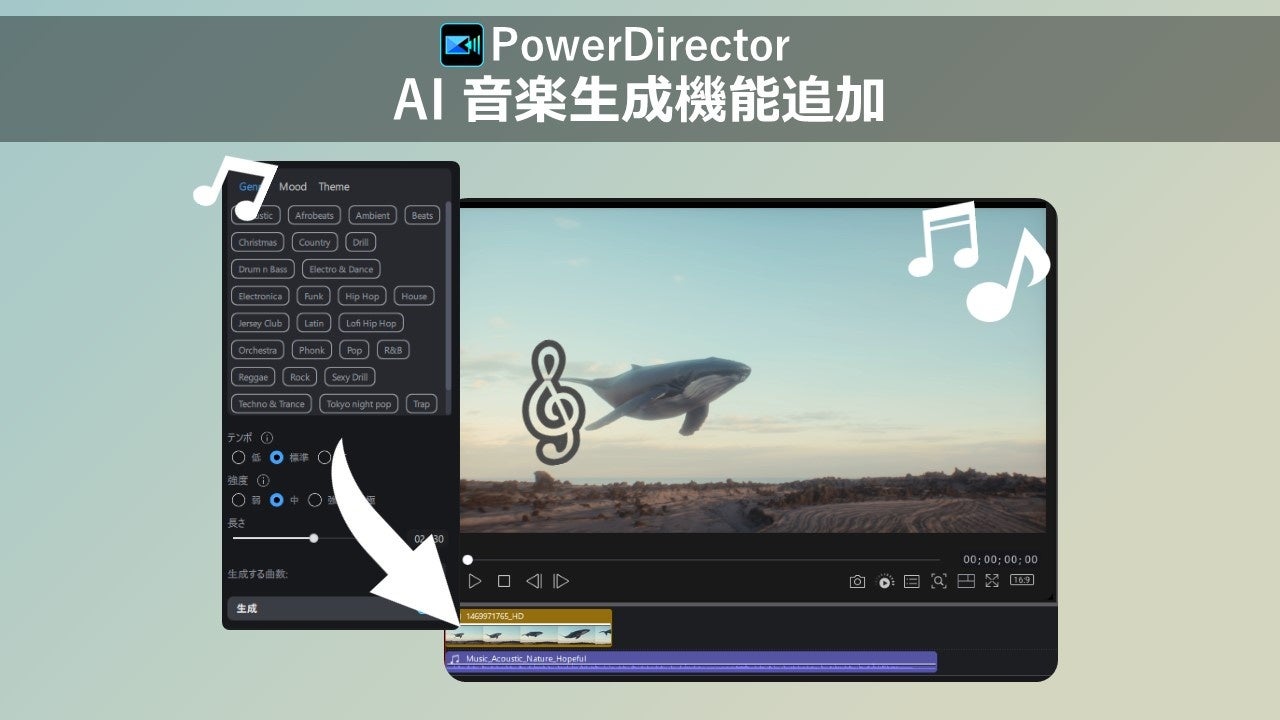 サイバーリンク、動画編集ソフト PowerDirectorに AI 音楽生成機能を追加