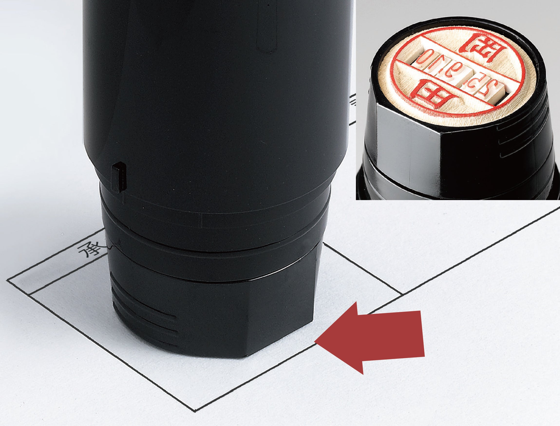・マスター部(印面)は、なつ印枠の下線に合わせやすい形状になっており、真っすぐキレイになつ印できます。