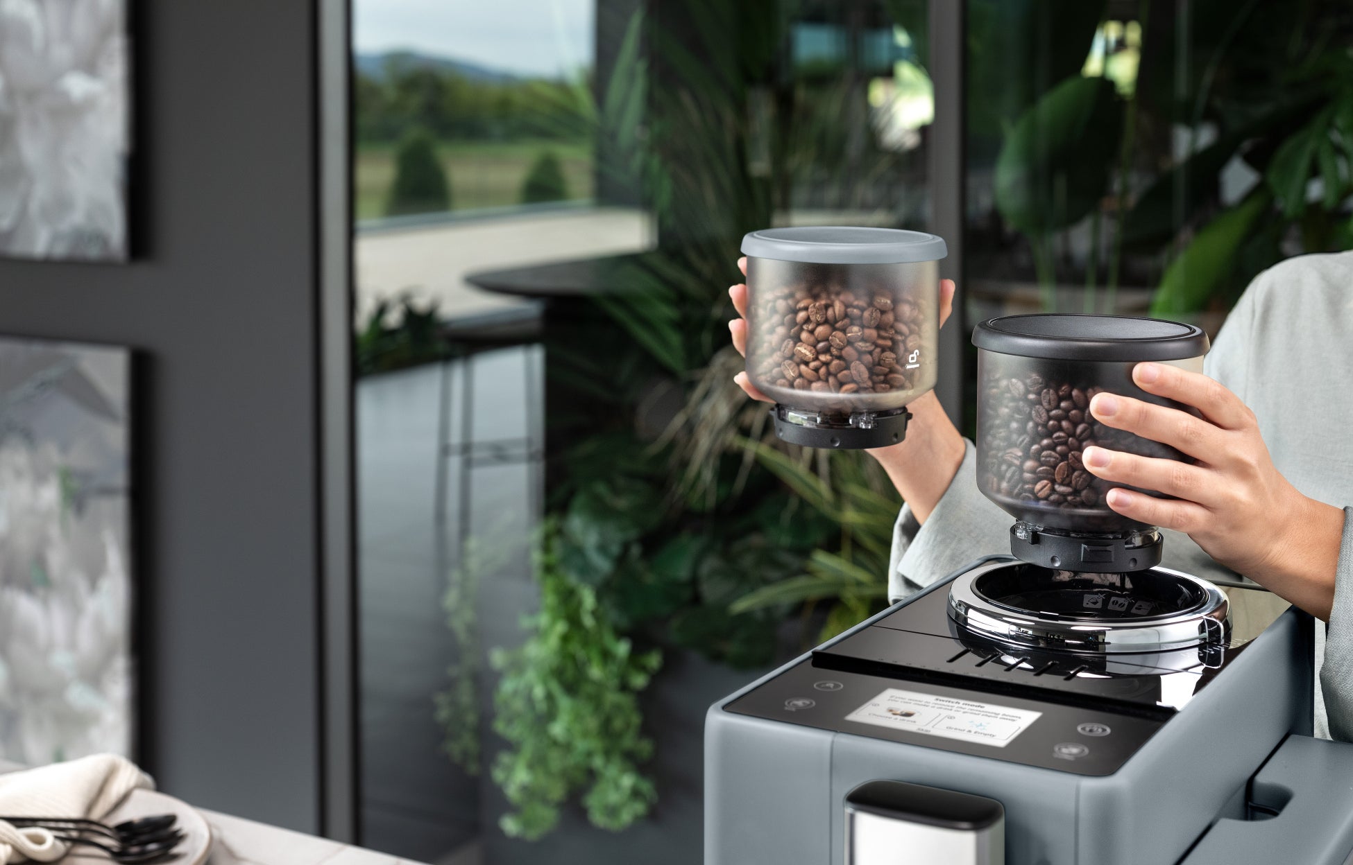 コーヒー豆の入れ替えを可能にした「ビーン スイッチ システム」を採用。二つの豆ホッパーにより、さまざまなメニューとお好みのコーヒー豆を手軽に組み合わせて、多彩な味わいのメニューをお楽しみいただけます。