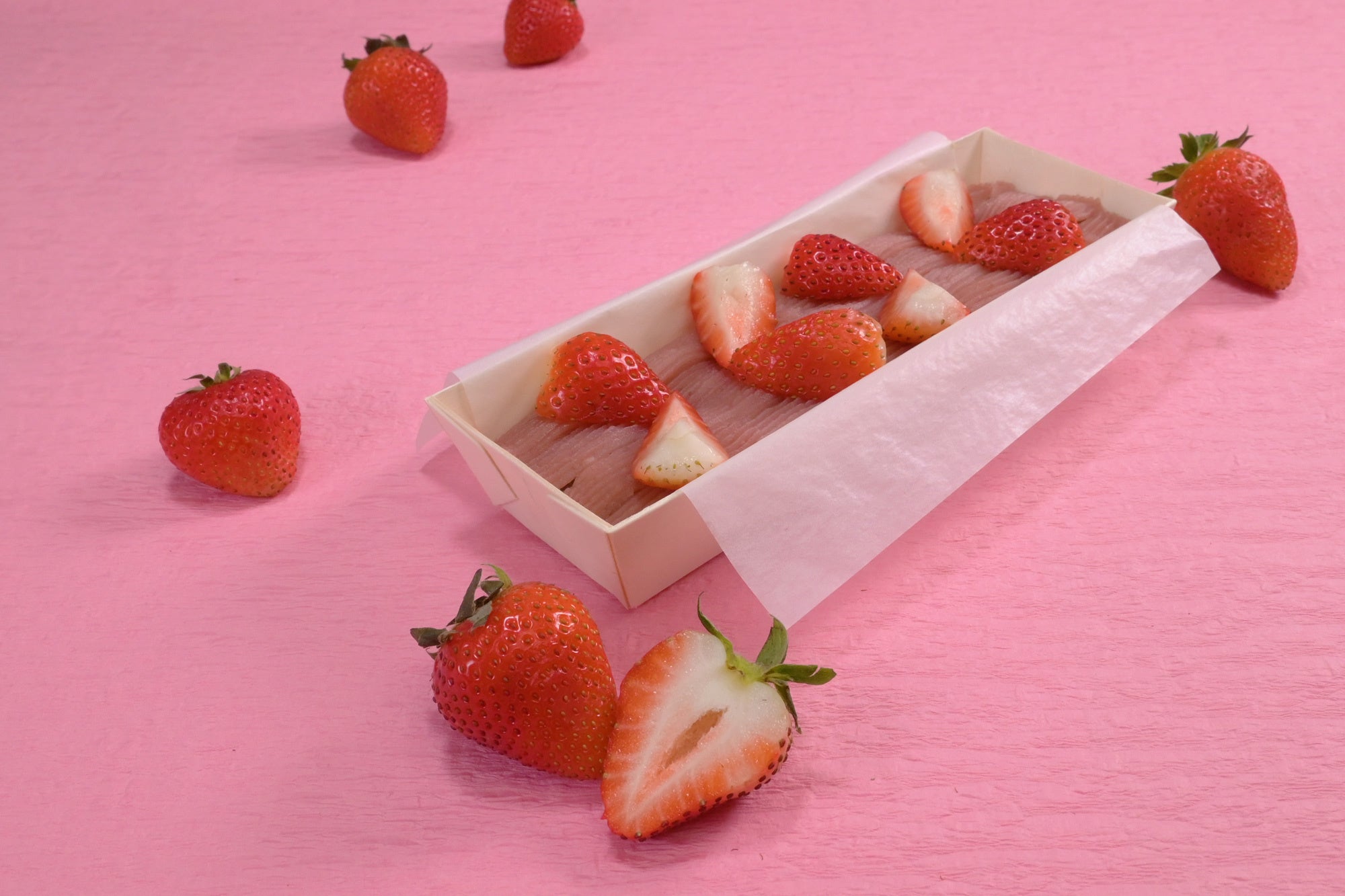 “贅沢苺のわらび餅”は、香り豊かな深みきな粉で包み込んだ生仕立てわらび餅の上に、ほんのりピンク色のいちご餡を絞り、さらにフレッシュな苺をちりばめました。苺の甘酸っぱい風味を活かしたいちご餡と、フレッシュ苺のみずみずしさが、「とろり」と滴り落ちるような食感のわらび餅の美味しさを引き立てます。