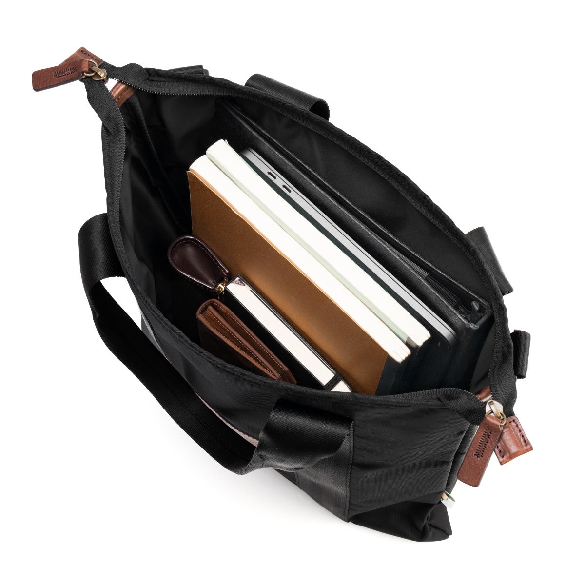 メイン素材には、米・インビスタ社製リサイクルナイロン100%素材「420 高密度CORDURAⓇECO」を採用。環境に優しいだけでなく、軽さと耐久性、上品な光沢感を兼備しています。ポケット上部やファスナータブにイタリアンレザー「バケッタ・ミリングレザー」をアクセントにあしらい、機能的なナイロン素材に革の味わいや経年変化の楽しみもプラスしたシリーズです。