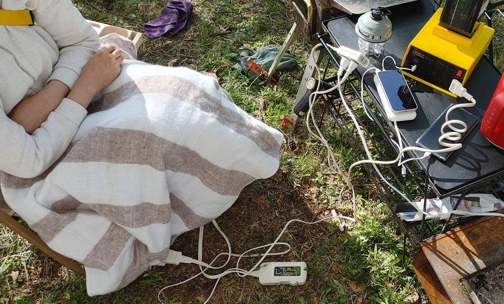 春といえども標高が高い場所や雨が降ると地面からの冷気で体が冷えてしまいます。テントの設営時は寝袋の下に電気毛布を敷いておくと底冷え対策になりますが、電源サイトがないキャンプ場もあるためポータブル電源があると安心です。
