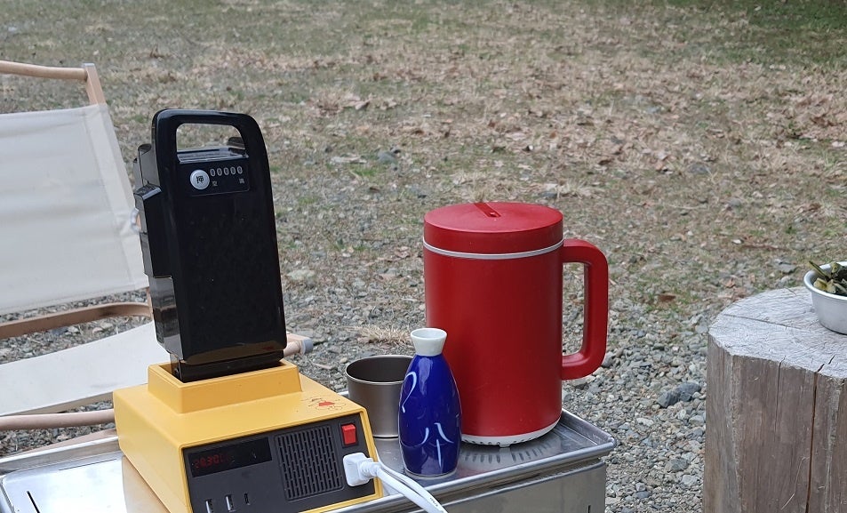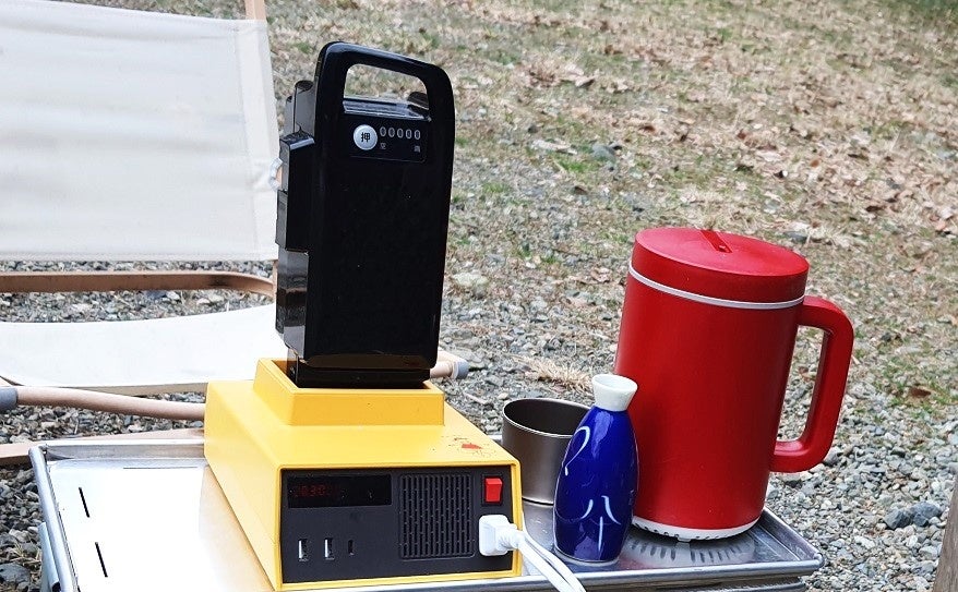 キャンキャンパーの「チャリパワー(ivt2499)」は電動アシスト自転車のバッテリーを使って500WのAC100V正弦波を出力するインバーターです。静音だから夜間も眠りを妨げず、電気毛布の電源になるだけではなく小型の調理器にも使えるため、炊飯や熱燗なんかも電源なしサイトや川辺で堪能できます。