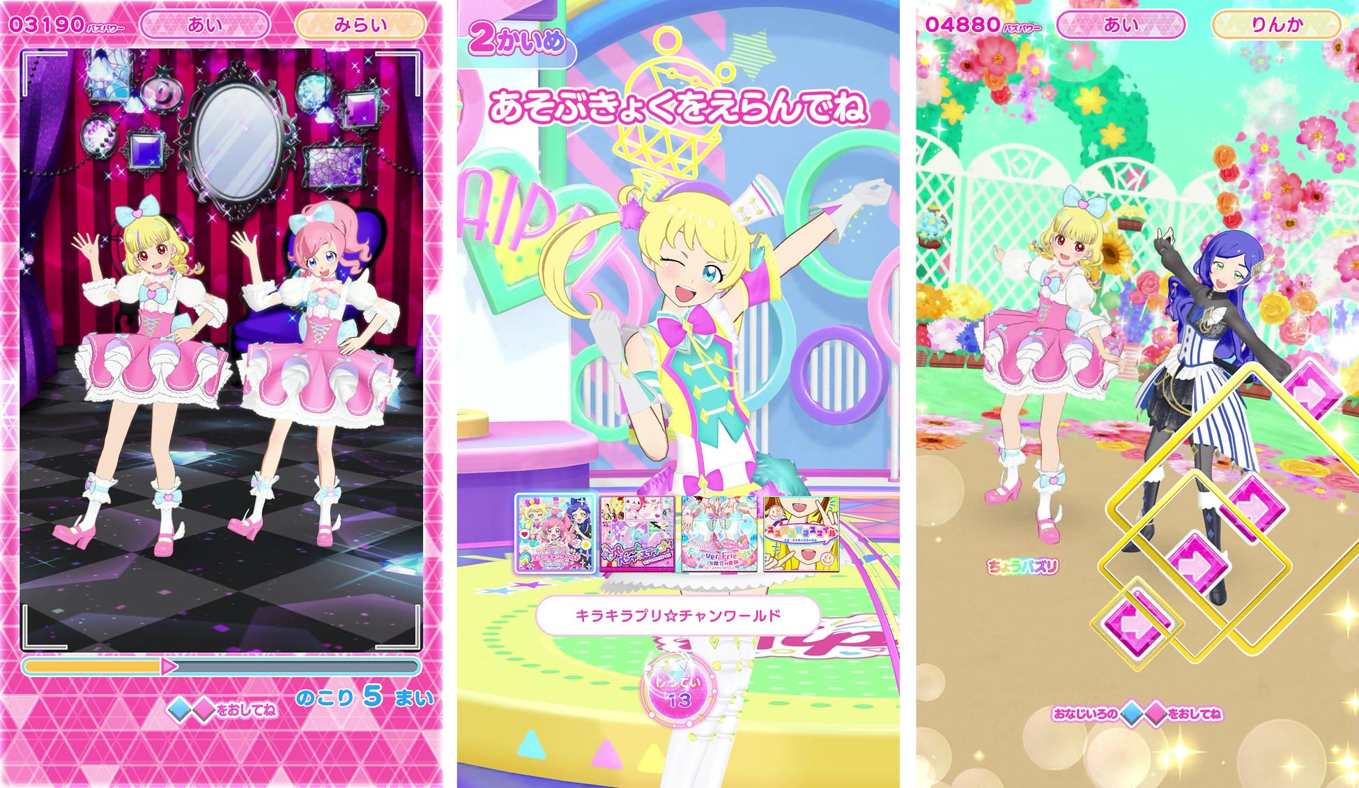 10月3日(木)から稼動する「4だん」では「アイプリひろば」に『キラッとプリ☆チャン』の主人公チーム「ミラクル☆キラッツ」の3人「みらい」「えも」「りんか」が登場します。『キラッとプリ☆チャン』は、『プリパラ』シリーズに続き2018年から始まった作品で、テレビアニメとアミューズメントゲームが約3年間展開されました。「ミラクル☆キラッツ」の3人は当時のゲームCGそのままの姿となっており、ユーザーは自分の「マイキャラ」と一緒に「ミニライブ」をしたり「パシャリング」で写真撮影をしたりといったゲームを楽しむことができます。