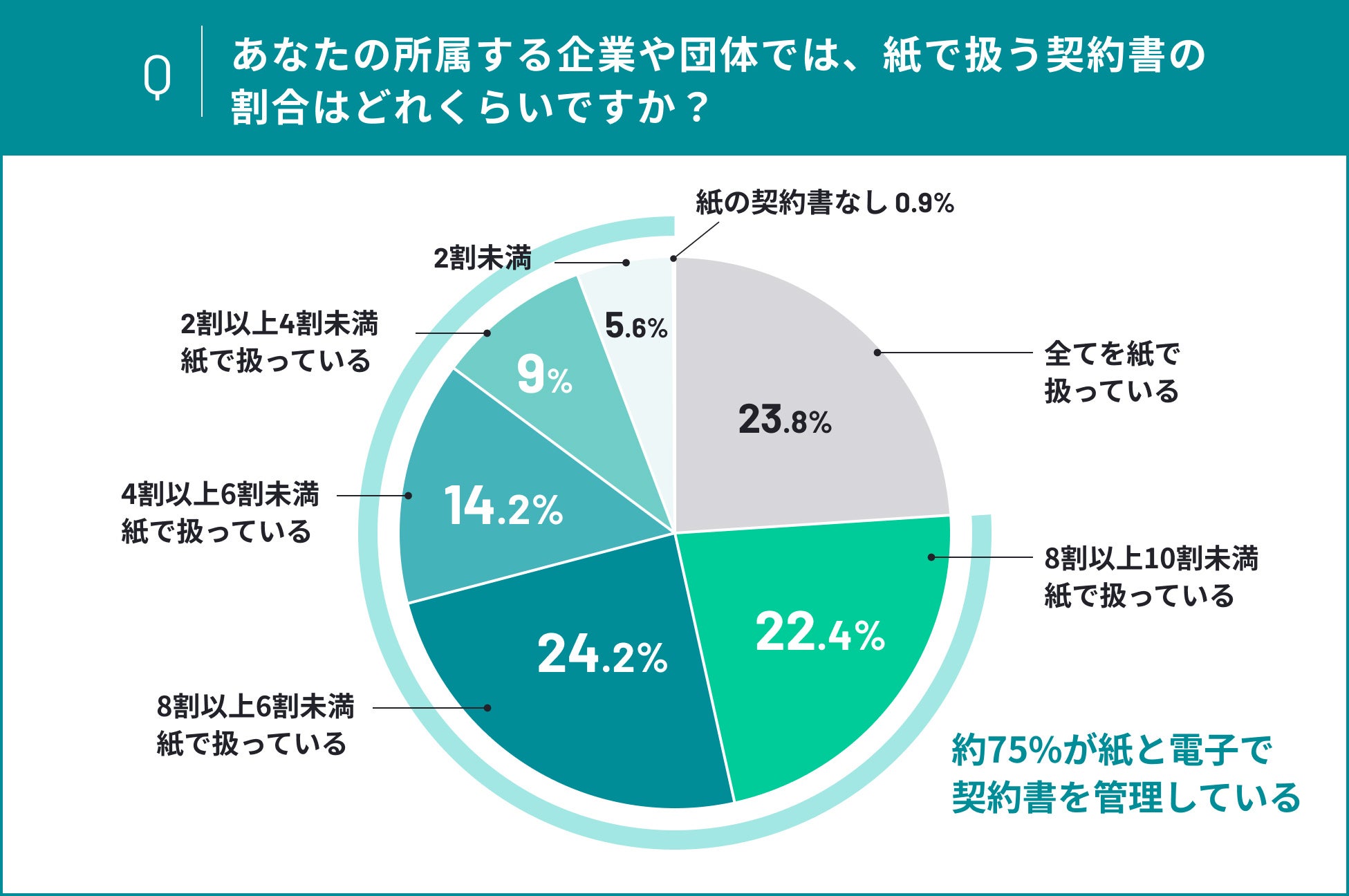 約75%が契約書を紙と電子で二重管理、紙と電子の契約書の数が同程度の場合に最も管理できていないという結果に