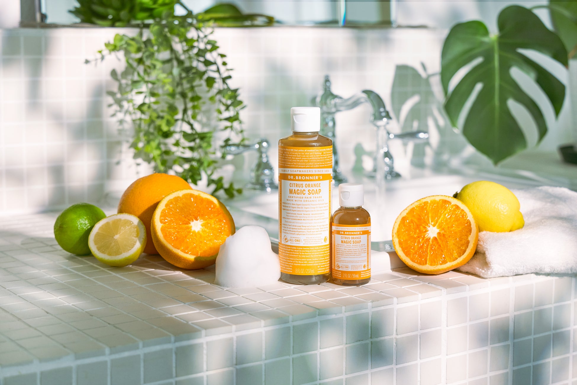 アースフレンドリーなオーガニックボディケアブランド「ドクターブロナー」から、洗うたび透明感*¹のある肌に導く「マジックソープ シトラスオレンジセット」を数量限定発売!
