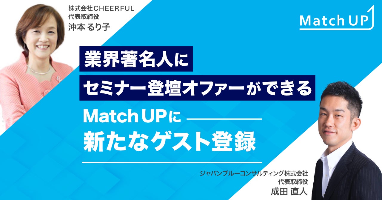 株式会社CHEERFUL代表取締役の沖本るり子氏、ジャパンブルーコンサルティング株式会社代表取締役の成田直人氏などが新たにゲスト登録!