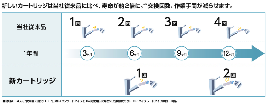 カートリッジ交換が面倒な人必見!業界No.1長寿命※5の浄水カートリッジ