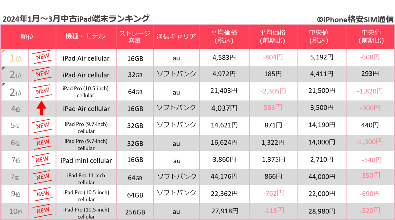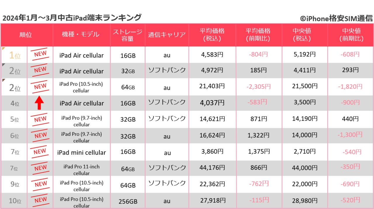 2.顔ぶれに変化 iPad Air人気が急上昇