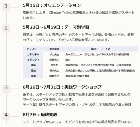 前半は東京大学の教授やスタートアップ企業など講師によるインプット、後半はワークショップをメインの形式