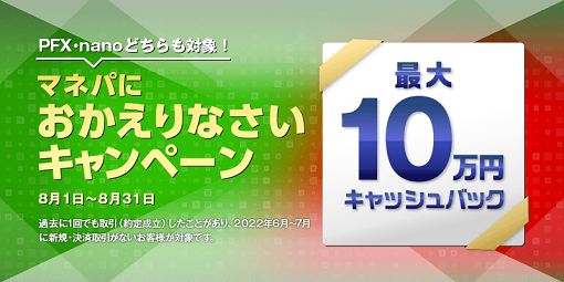 FX取引の再開するなら8月からがお得!最大10万円キャッシュバックのマネパへおかえりなさいキャンペーンのご案内