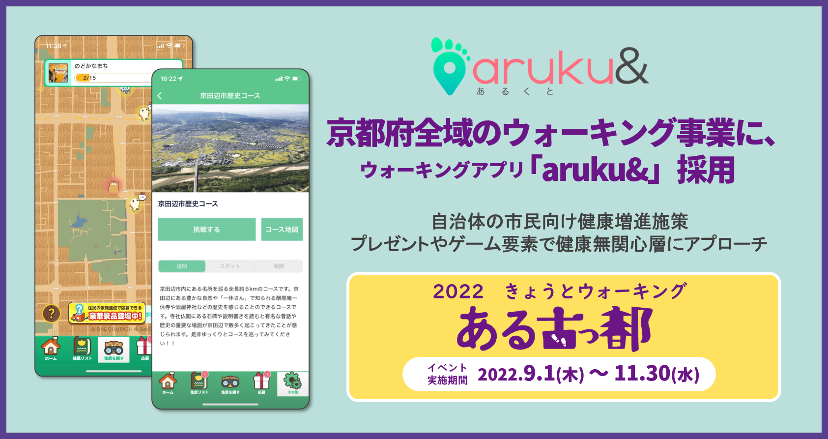 京都府全域のウォーキング事業に、ウォーキングアプリ「aruku&」採用