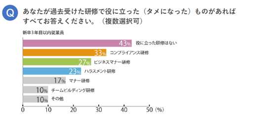 約4割以上の若手従業員が「役に立った研修はない」と回答。