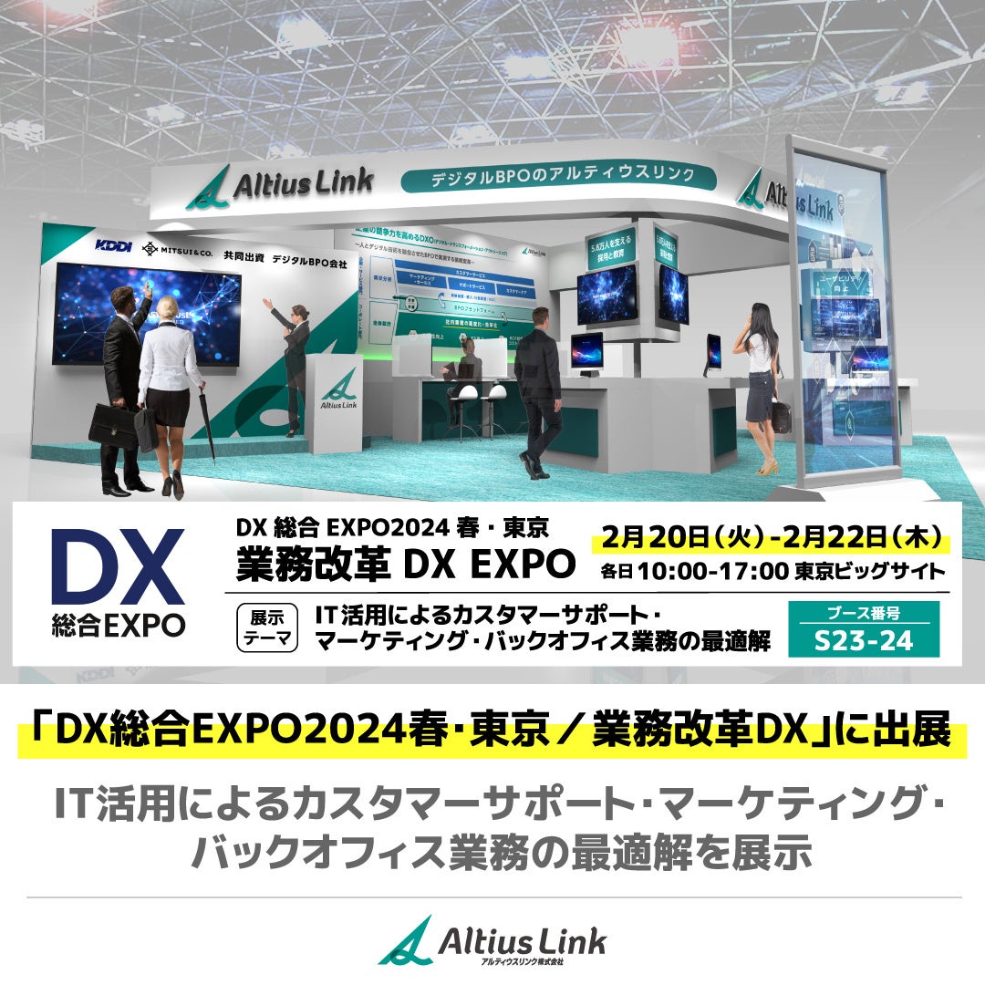 アルティウスリンク、「DX総合EXPO2024春・東京/業務改革DX」に出展 ~IT活用によるカスタマーサポート・マーケティング・バックオフィス業務の最適解を展示in東京ビッグサイト2月20日-22日